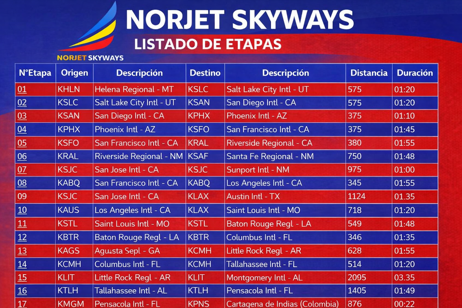 Norjet Skyways es una aerolínea virtual enfocada en operaciones realistas bajo estándares inspirados en la aviación comercial moderna. Nuestro objetivo es ofrecer a los pilotos un entorno estructurado, con procedimientos claros y una red de rutas diseñada para maximizar la experiencia de vuelo y la eficiencia operativa