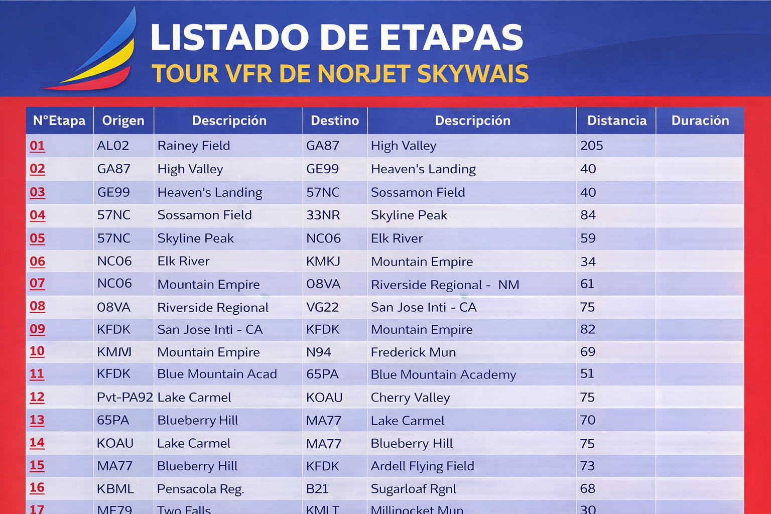 The Norjet Skyways network is designed to offer variety and operational consistency: • Regional routes for short, high-volume flights • Trunk routes between major hubs • Long-haul operations with advanced planning • Special routes for events, seasons, or themed missions Each route includes: • Planned distances • Recommended alternates • Suggested SID/STAR procedures • Relevant performance information